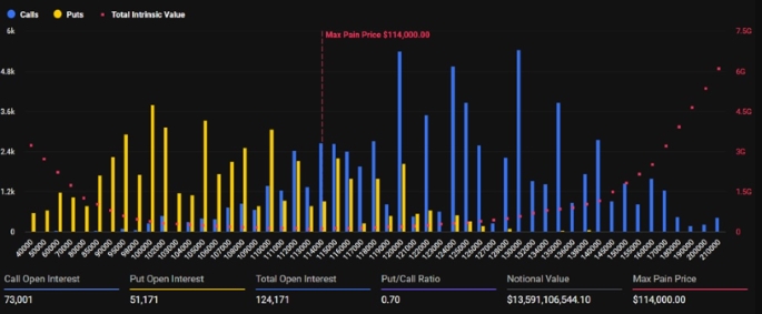 Son 24 saatte BTC, 106.000 dolardaki likiditeyi topladı ve ardından 110.000 dolara doğru yükseldi. Deribit verilerine göre 124.171 Bitcoin opsiyonu bugün vadesine ulaşıyor. Bu sözleşmelerin toplam değeri 13,59 milyar dolara ulaştı.