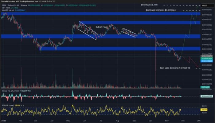Aralık 2024’teki 0,00002803 dolarlık zirvesinin hâlâ %84 altında.