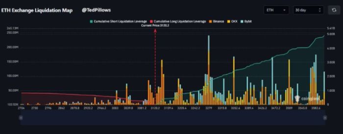 Yeni 30 günlük likidasyon haritası, ETH için son derece avantajlı bir yapı gösteriyor. Grafiklere göre: