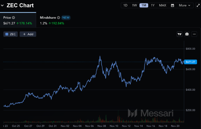 Sadece bir ayda yüzde 178 yükselen ZEC, ekim ayından bu yana yüzde 1500’ün üzerinde bir performans sergiledi.