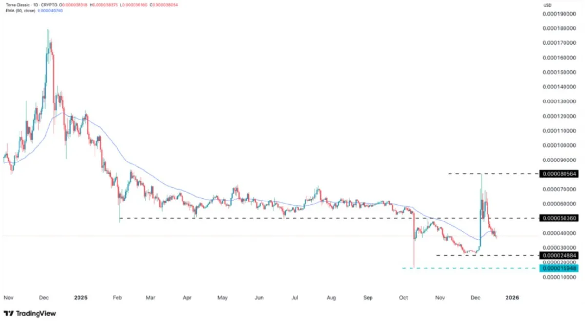 LUNC coin 19 Aralık 2025 Cuma günü sert düşüş hareketini devam ettirdi. Bu noktada yatırımcılar Do Kwon’un cezasını beklerken ay başındaki kazançlar silindi.