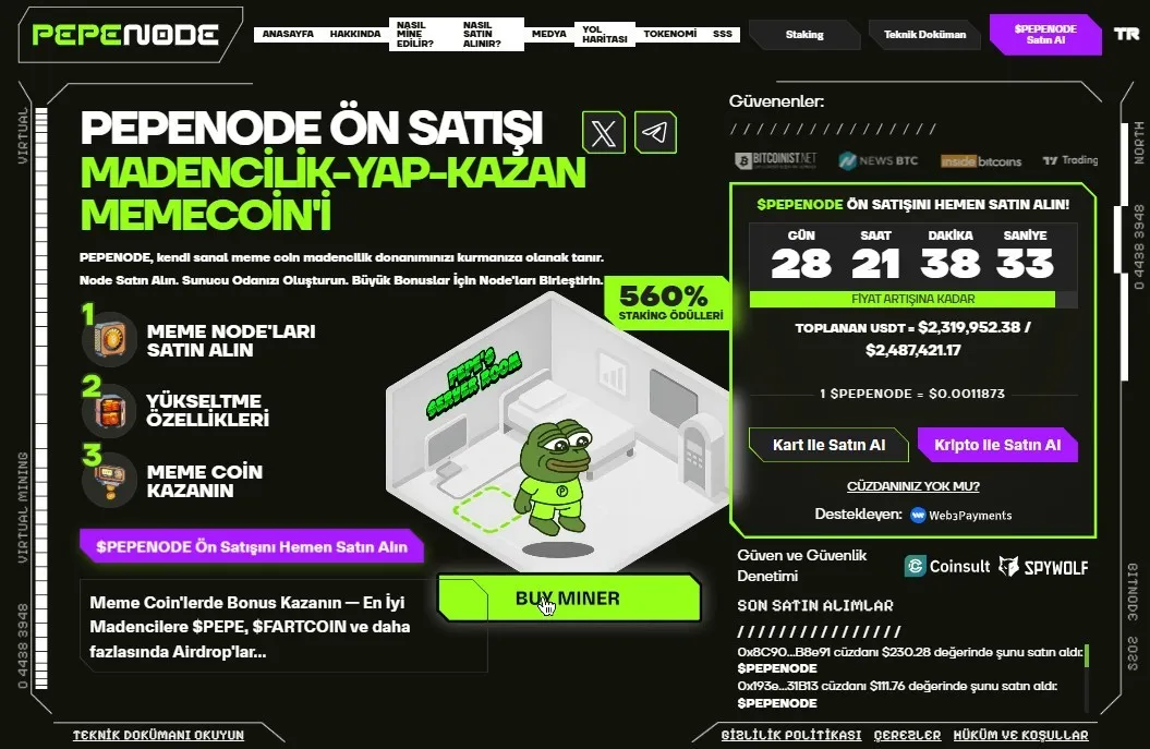 P2E 3.0’ın lideri PepeNode, 2,3 milyon dolarlık başarısıyla ön satışın son 28 gününe girdi. Tıklama odaklı eski oyunların aksine, stratejik madencilik simülasyonu ve %70 token yakımıyla sürdürülebilir bir ekonomi sunuyor. Ödüller kazandıran bu projeye, en avantajlı fiyattan katılmak için son günler.
