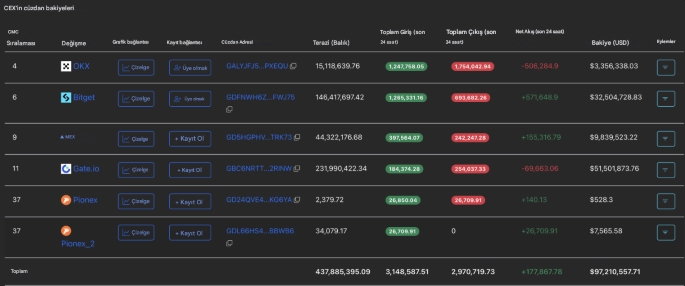 PiScan verilerine göre, son 24 saatte borsaların cüzdanlarına 177.867 PI token aktarıldı. Bu akış, toplam bakiyeyi 437.88 milyon tokene taşıdı.