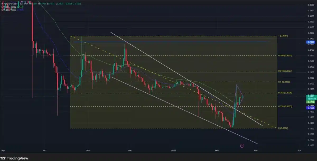 Tokenin fiyat hareketi, günlük grafikte birden fazla yükseliş formasyonu oluşturdu. Ancak yazım sırasında 0,175 dolar seviyesinde dengelendi.
