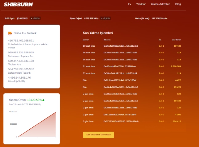 Shiba Inu (SHIB) ekosistemi, son 24 saatte yakım oranını yüzde 13.120 artırdı. Bu artış, 9.778.166 tokenin yakılmasına yol açtı. SHIB arzındaki bu daralma, fiyat rallisini tetikleyebilir.