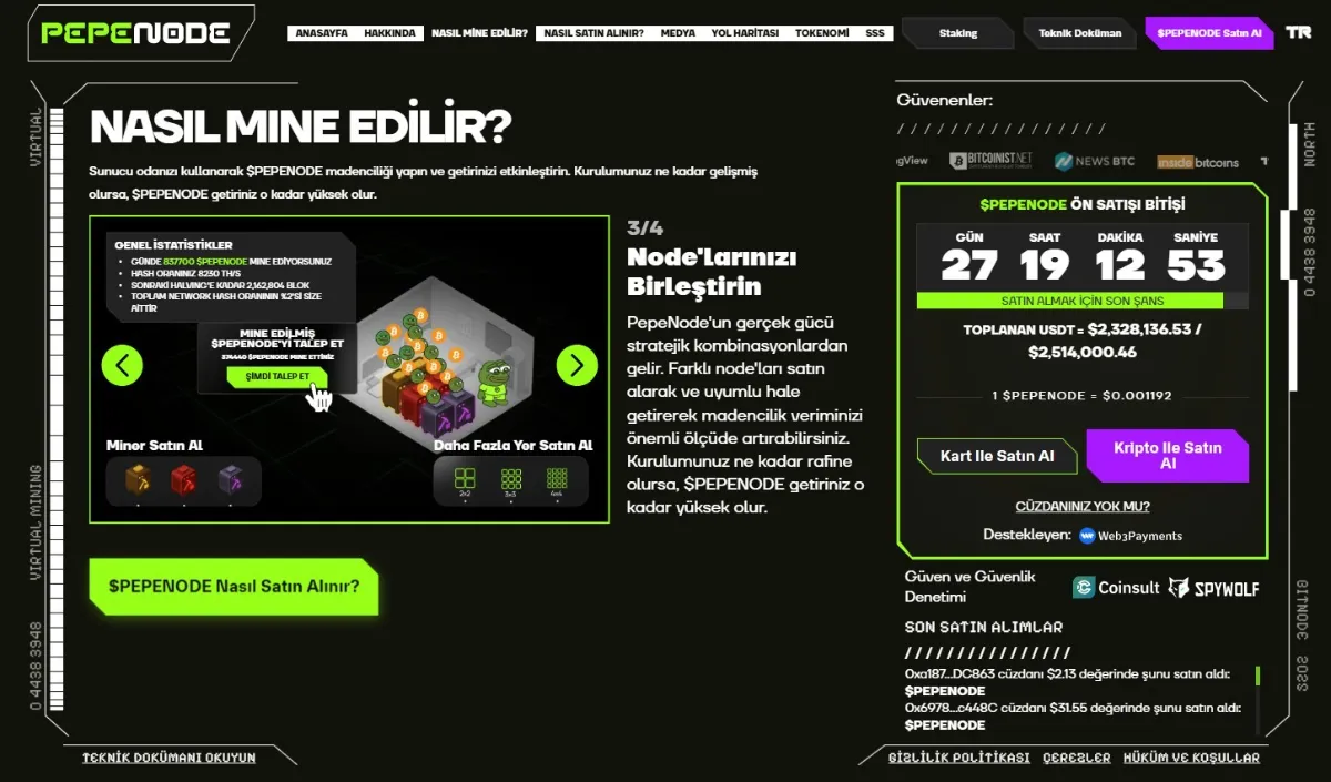Ön satış sonrasında PEPENODE yalnızca borsalar üzerinden temin edilebilecek. Bu ön satış coin fırsatını kaçırmamak için acele etmek gerekiyor.