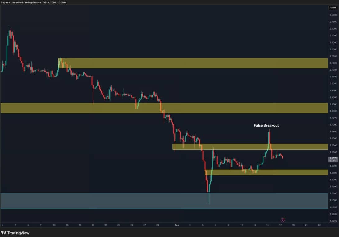 Şu anda piyasa, 1,20–1,80 aralığında dalgalanıyor. Ayrıca sahte kırılım sonrası fiyat, daha dar bir bantta sıkışma eğilimi gösteriyor.