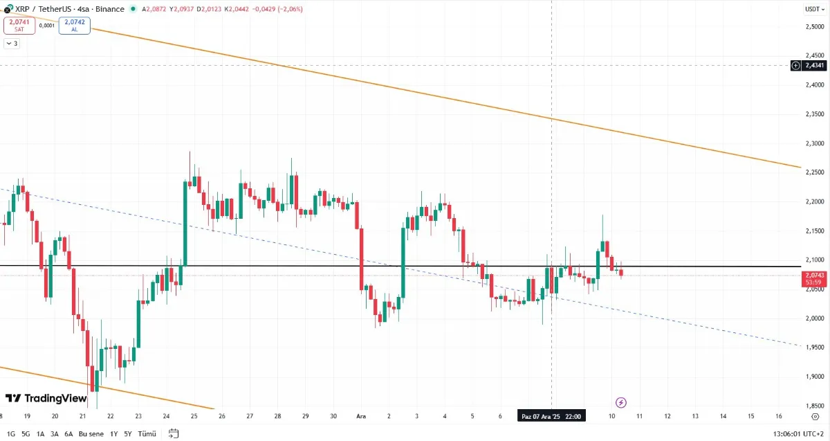 Öte yandan XRP coin için 2,083 ile 2,17 dolar arasında geniş bir denge alanı oluşturdu. Bu bölge, alıcılar ile satıcılar arasında likiditenin yeniden dağıldığı bir sıkışma sunuyor.