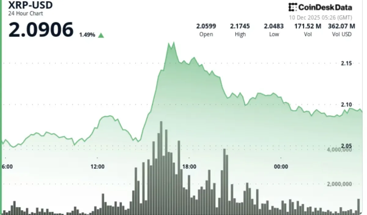 Hacim bu sırada ortalamanın %184 üzerine çıktı. Kurumlar bu geri dönüşte başrolü oynadı. Daha sonra XRP fiyatı $2.09–$2.10 bandına süzüldü.
