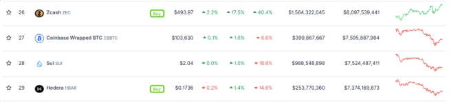Bu yükseliş ZEC’i genel kripto piyasasında 26. sıraya taşıdı. Ayrıca SUI ve HBAR gibi önde gelen altcoinleri geride bıraktı.