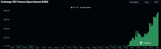 Ayrıca CoinGlass verileri, borsalardaki ZEC vadeli işlem açık faizinin 773,84 milyon dolarla rekor kırdığını belirtiyor.
