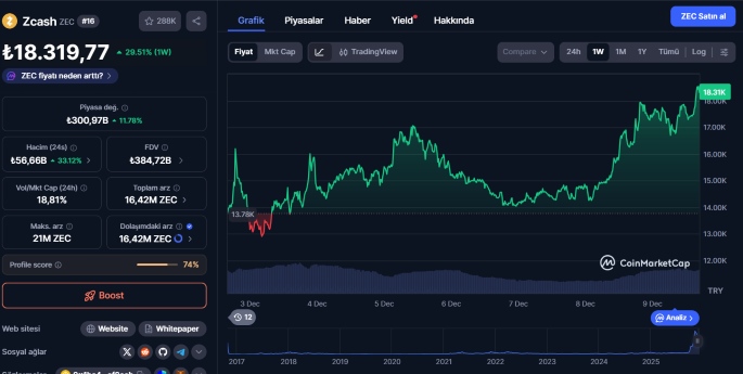 Gizlilik odaklı kullanım alanlarının 2025 genelinde yeniden talep görmesi, ZEC’i hem bireysel hem kurumsal yatırım çevrelerinde takip listesinin üst sıralarına taşıdı.